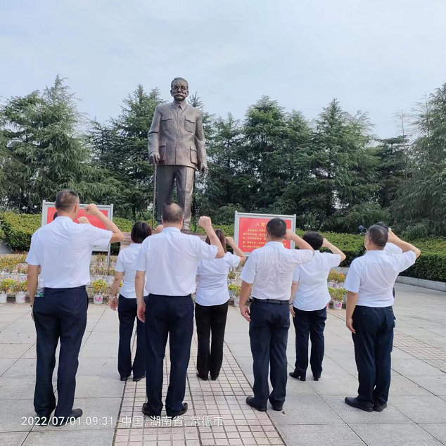 2022年7月1日,中國共產(chǎn)黨成立101周年。從南湖紅船到巍巍巨輪,百年征程波瀾壯闊,百年初心歷久彌堅,中國共產(chǎn)黨團結(jié)帶領(lǐng)全國人民創(chuàng)造了一個又一個偉大奇跡,黨員干部帶頭賡續(xù)紅色血脈,踐行初心使命。正值黨的生日之際,陽光物業(yè)支部委員會20余名黨員在林伯渠紀念館開展追尋紅色足跡、賡續(xù)紅色血脈的主題黨日活動。